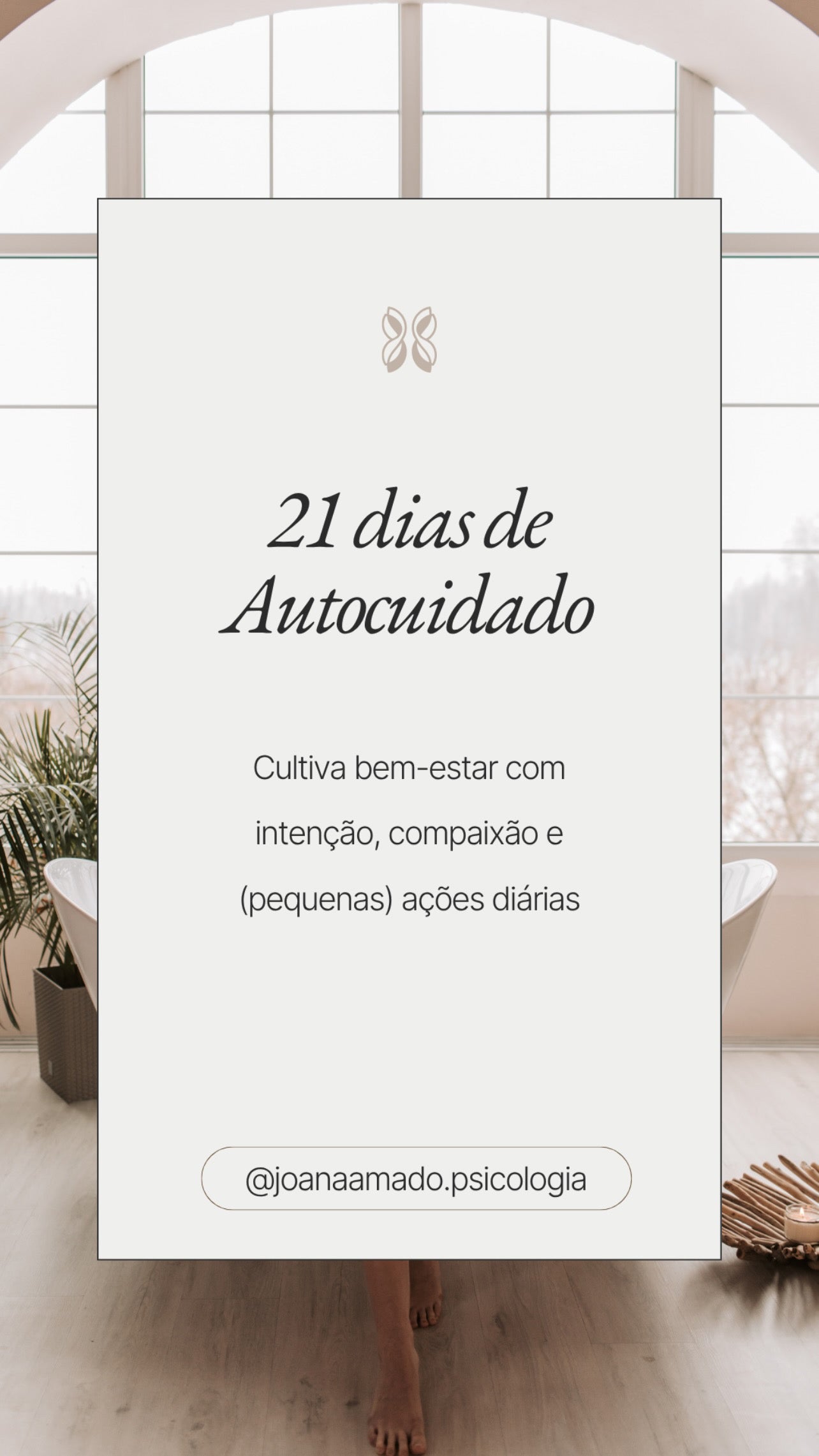 Este desafio consiste num guia prático de 21 dias que vai ajudar a criar espaço para si e para o seu autocuidado, cultivar hábitos de bem-estar e desenvolver mais amor-próprio — ao seu ritmo, na sua rotina.